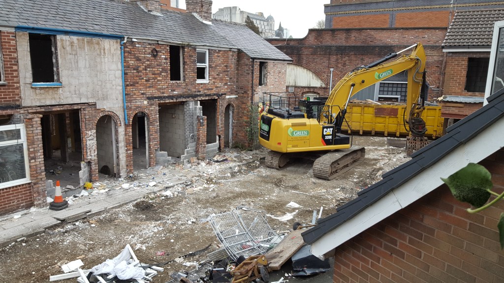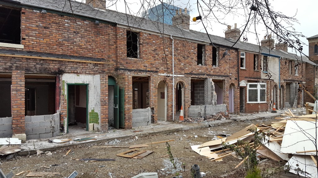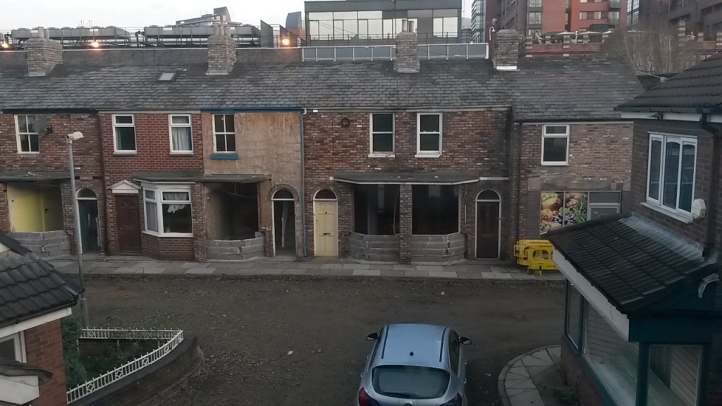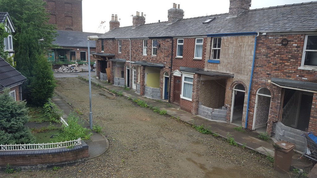 Pictured in 2014, prior to being redressed for Snatch filming in 2016/17 2008: The Victoria Court façade is added to hide Stage Two and complete Victoria Street.
