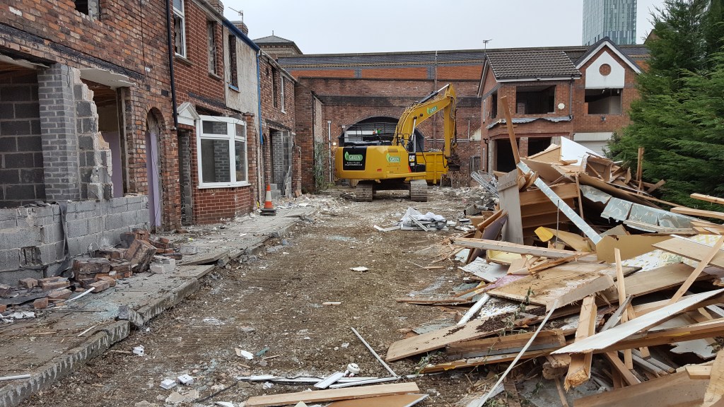 ©ITV 1971: Archie Street in Salford – the real-life inspiration for Coronation Street – is demolished. In Weatherfield, the maisonettes are demolished and replaced with a community centre and factory.