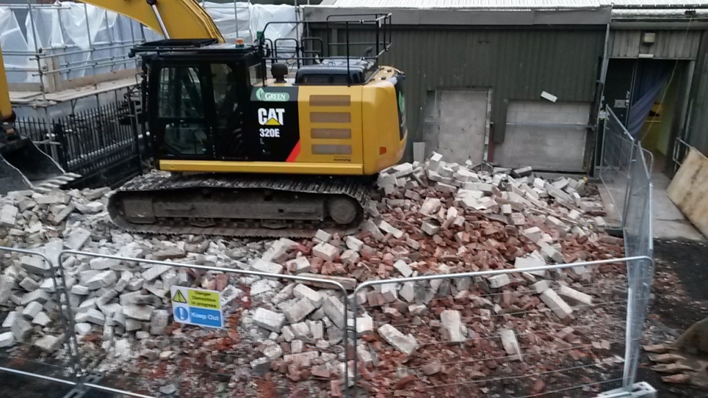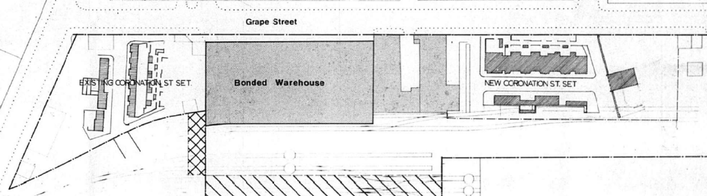 The new set under construction ©ITV 1989: On the new set, the community centre and factory are demolished, to be replaced with a modern residential terrace. In real life, the Stage One building (1984) is converted from Granada’s Superbowl studio to Coronation Street‘s studio. The new studio opens in 1990.