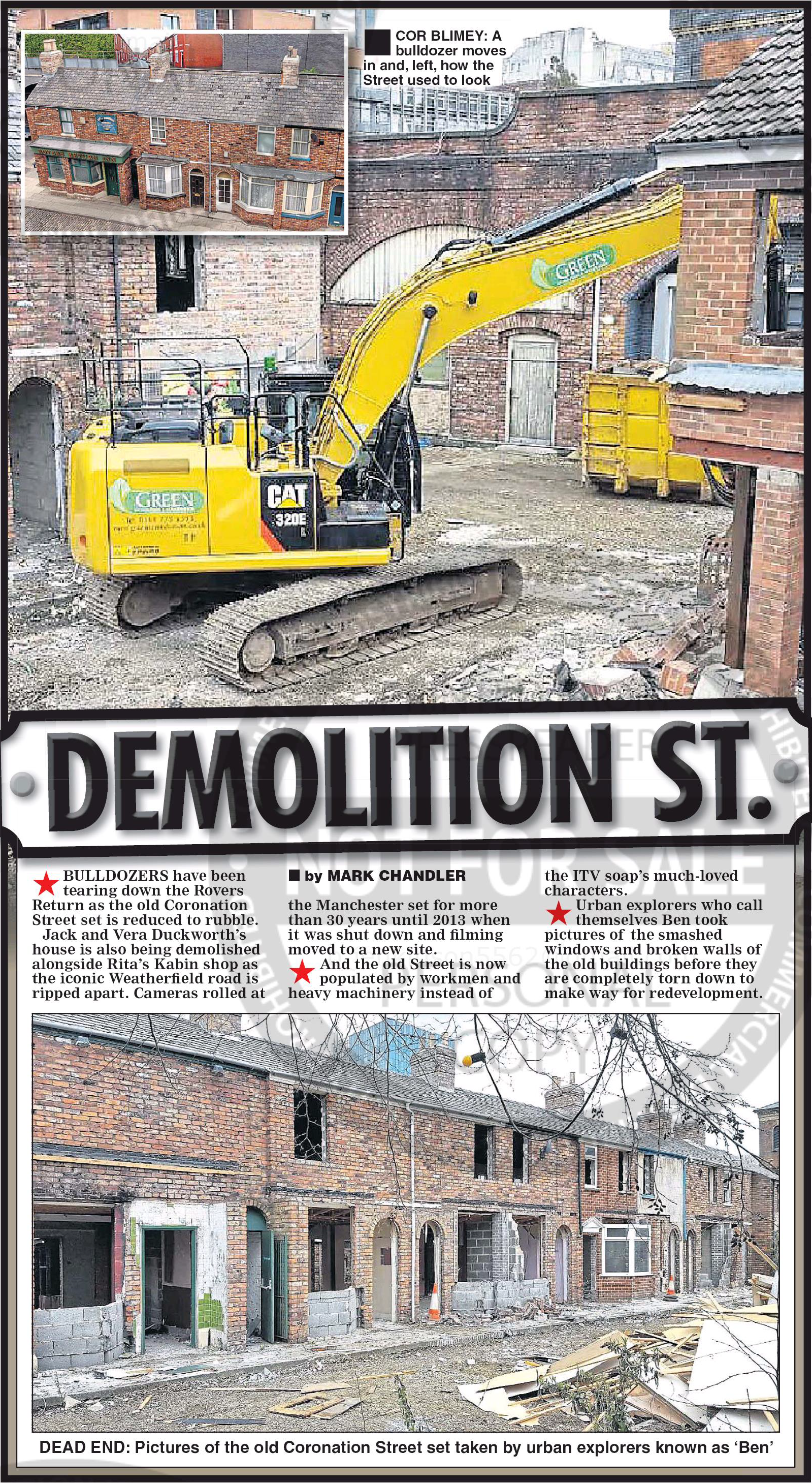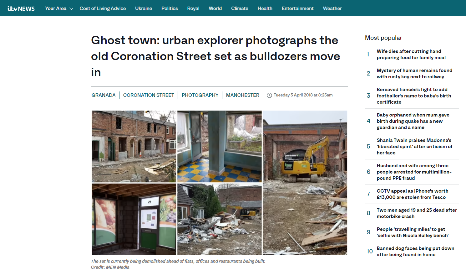 ©EC Creative 2013: 20 December 2013 marks the final day of filming for Coronation Street at the Granada TV Centre. The lot is demolished five years later.