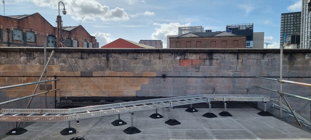 ©ITV/Jenkins Design Services 2010: Parts of the shops at the eastern end of Coronation Street (at its junction with Viaduct Street) and the top of the viaduct façade itself are re-built as part of the tram crash storyline.