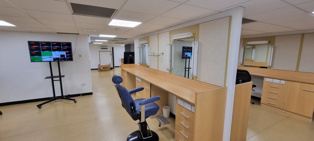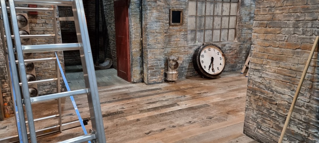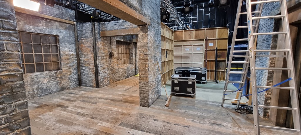 At the time of photographing, the set had been built in Studio 1 (the former home of Coronation Street). It was relocated to Studio 12 in 2024 when Studio 1 became an indoor go-karting track.