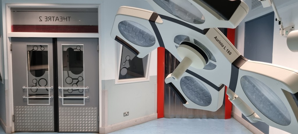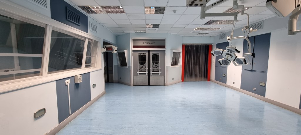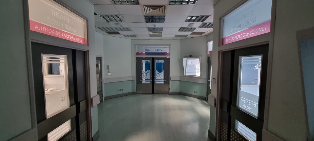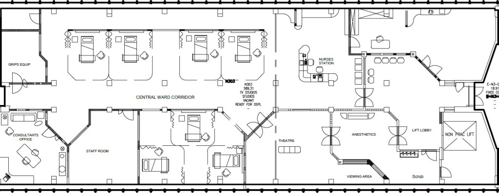 Before all this, I’d managed to photograph parts of Holby City Hospital while still intact. The operating theatres pictured are the Darwin Theatre – located on the sixth floor (both in the programme and in real life) and mapped out below: