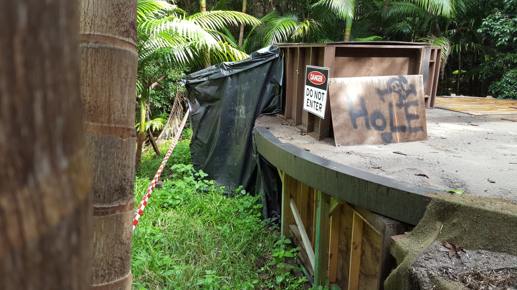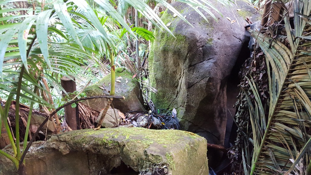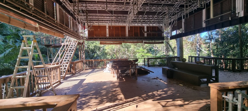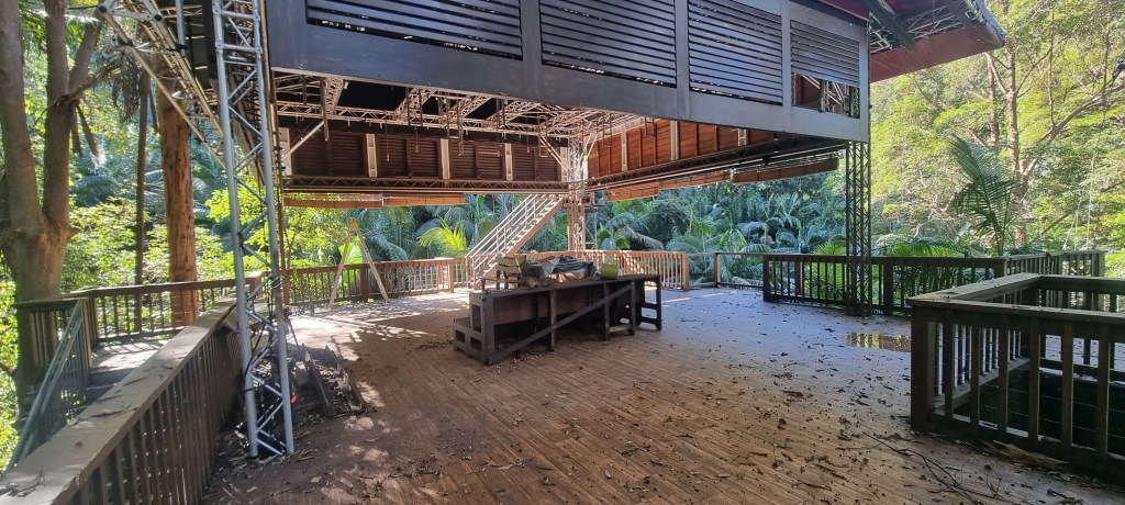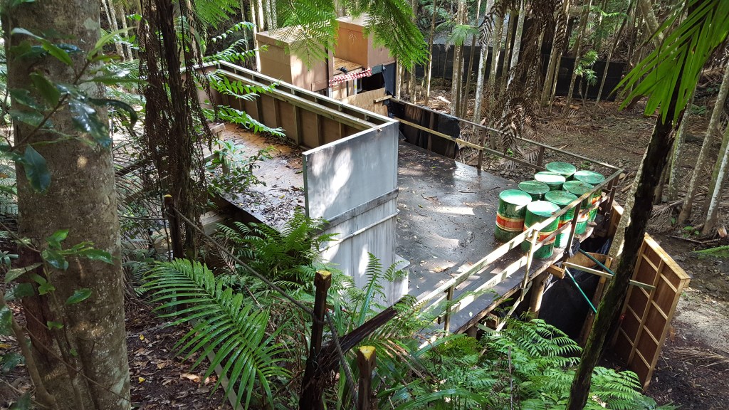 The original filming location was King Ranch (Tully River Station) in Cardstone, Queensland. Here, a studio was built on the banks of Kooroomool Creek, accessed via a scaffold walkway through the trees and a bridge over the creek. The camp was located about a minute’s walk from the studio, with direct access also possible across a bridge from the site access road.