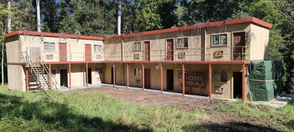 The nearby Murwillumbah Motor Inn houses various cast and crew during filming itself, and the Tumbulgum Tavern is said to be a popular watering hole. The coastal towns of Kingscliff, Casuarina and Cabarita Beach also provide accommodation during the production period. The celebrities themselves stay at the JW Marriott Gold Coast Resort & Spa before and after their jungle stint (the Palazzo Versace Gold Coast hotel being used previously), and hotels at Coolangatta are also used – one of which houses a production office; pictured below.