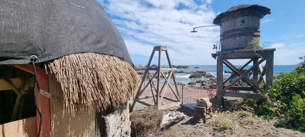 Episode 9 – Pell-Mell saw Susan’s cottage, from the Time of Legends, built on Wellington’s Hue tē Taka Peninsula. This location at 69A Moa Point Road is often referred to as Moa Point, although this is actually just the name of the suburb and the peninsula’s southern tip.