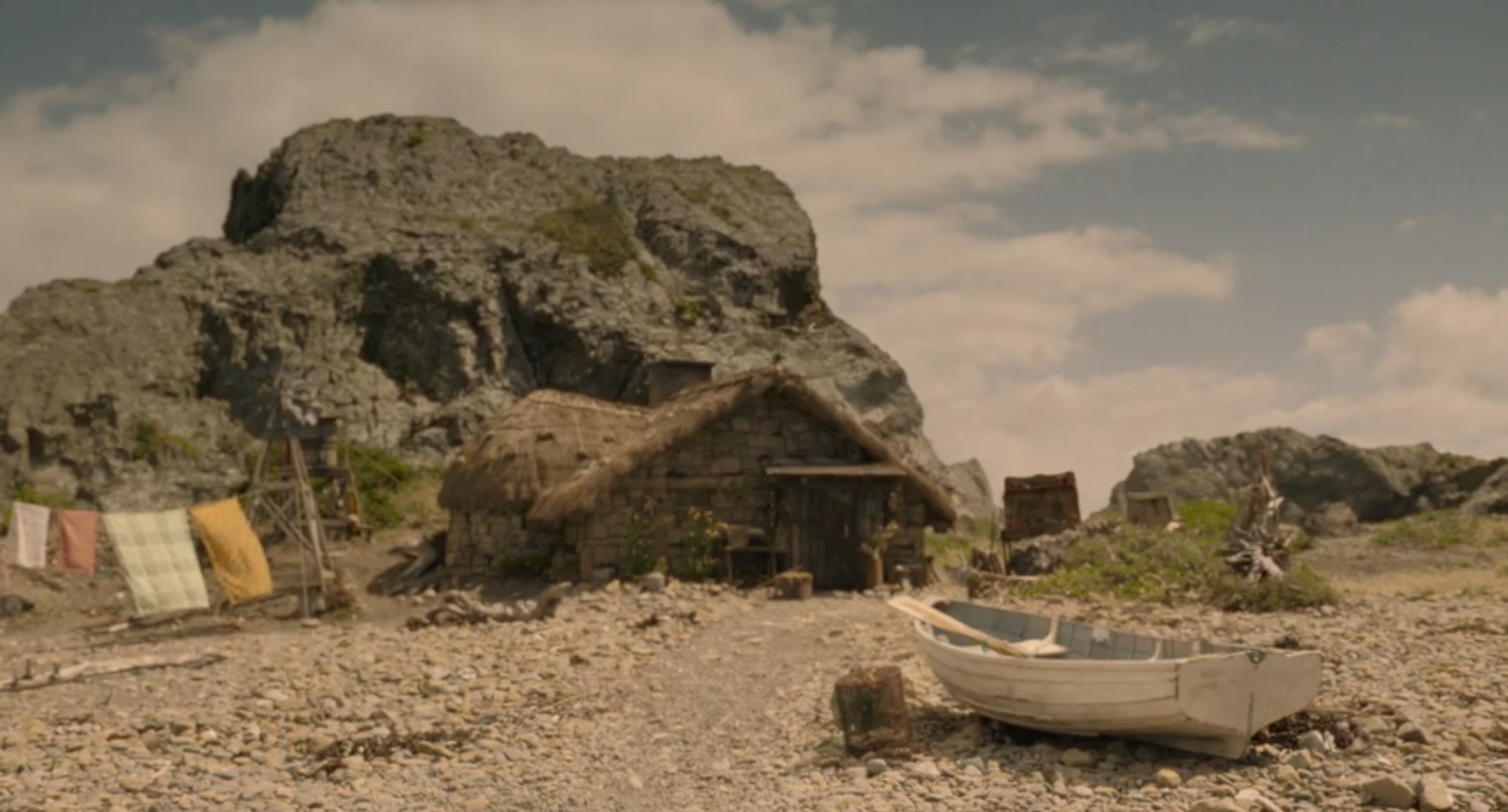 The Time of Legends island (which turns out to be the head of Hen the Giant) contains only Susan’s cottage, inhabited by her and Gavin. The cottage is close to the coastline, which in real life is Wellington’s Tarakena Bay.